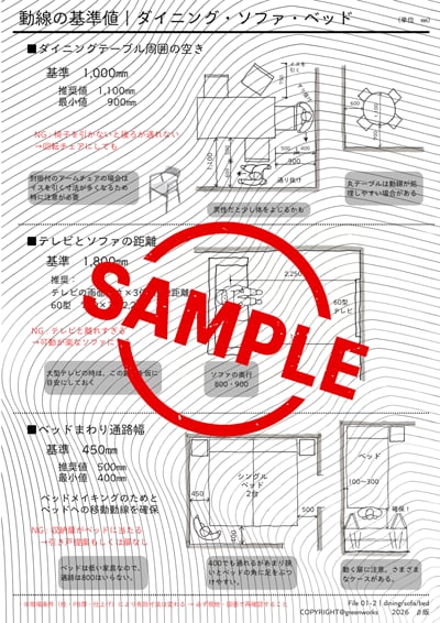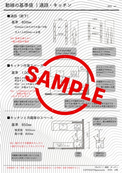 ・動線の基準値(通路・キッチン・ダイニング・ベッド)