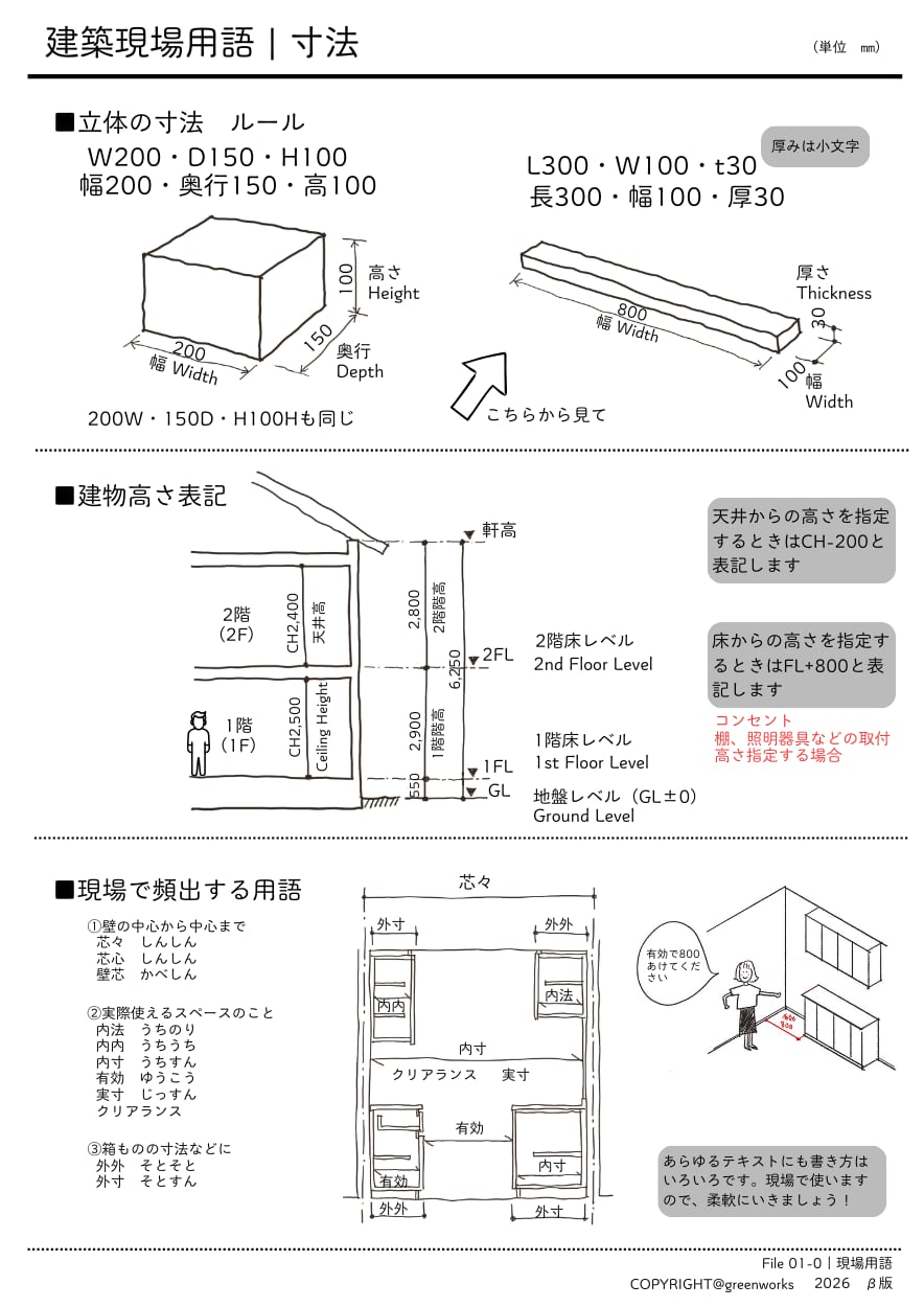 ICのための現場用語・寸法シート vol.1